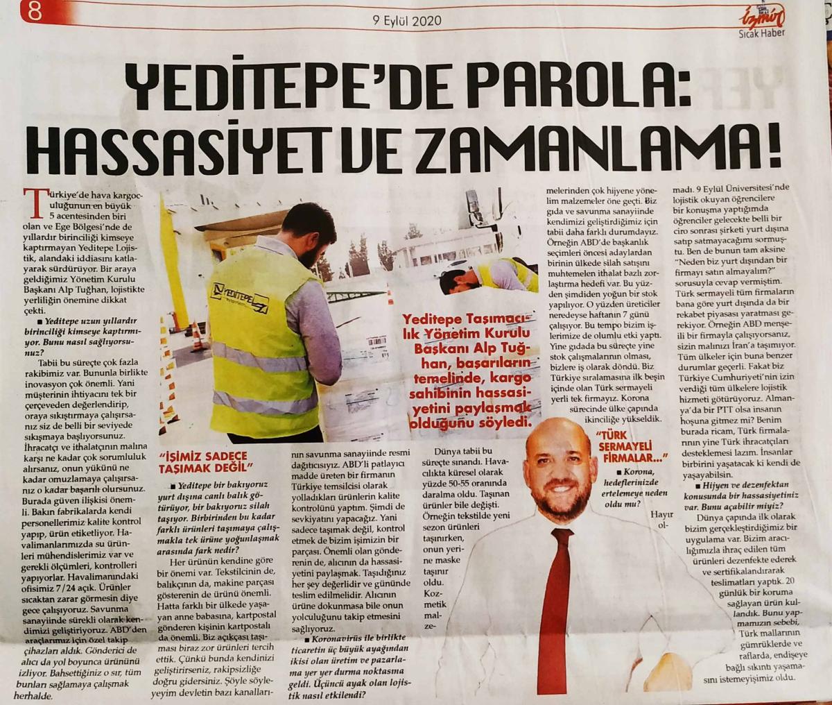 Türkiye’de hava kargoculuğunun en büyük 5 acentesinden biri olan ve Ege Bölgesi’nde de yıllardır birinciliği kimseye kaptırmayan Yeditepe Lojistik, alandaki iddiasını katlayarak sürdürüyor. Bir araya geldiğimiz Yeditepe Taşımacılık Yönetim Kurulu Başkanı Alp Tuğhan, lojistikte yerli firmaların önemine dikkat çekti.